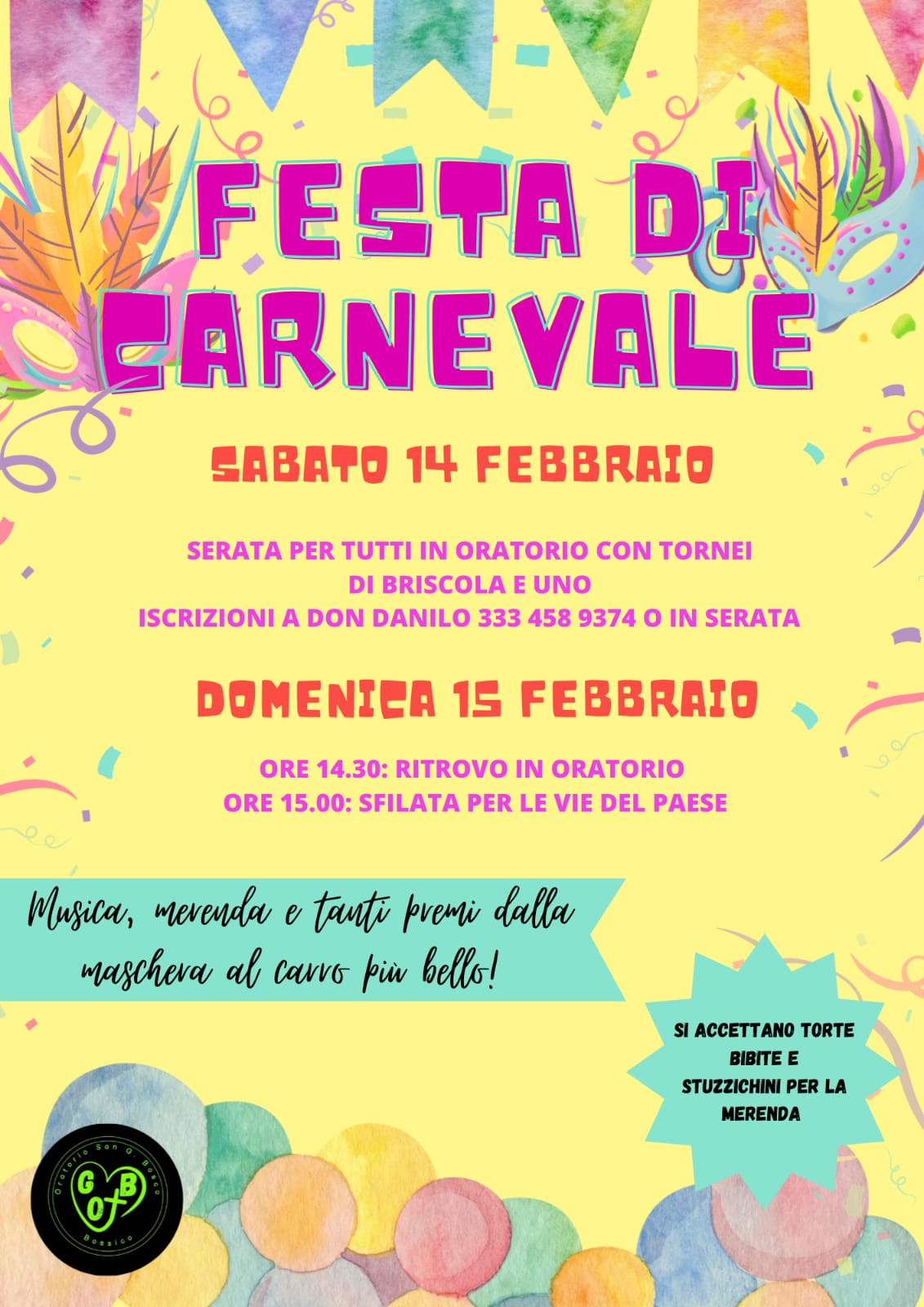 - ore 14:00 ritrovo in oratorio vestiti in maschera