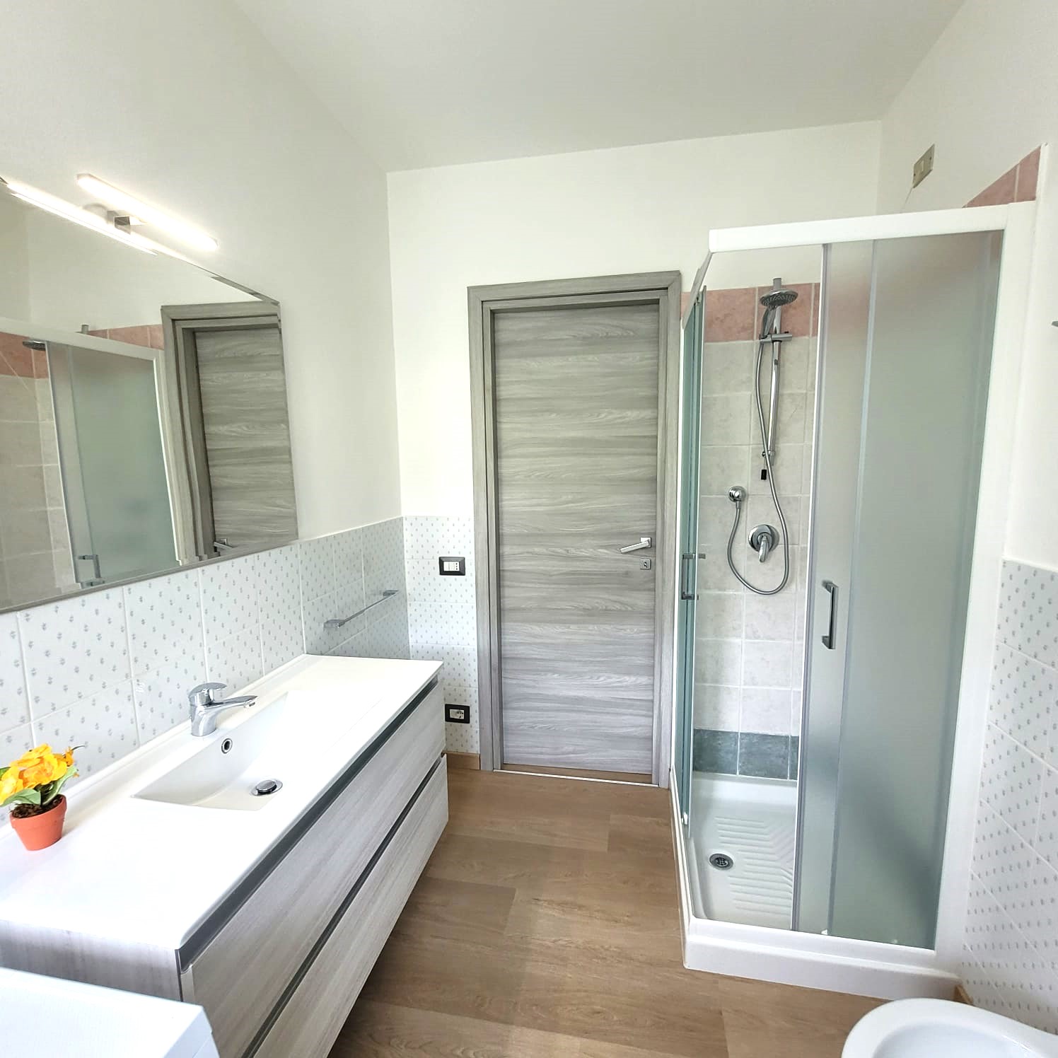 – Un bagno con doccia e lavatrice